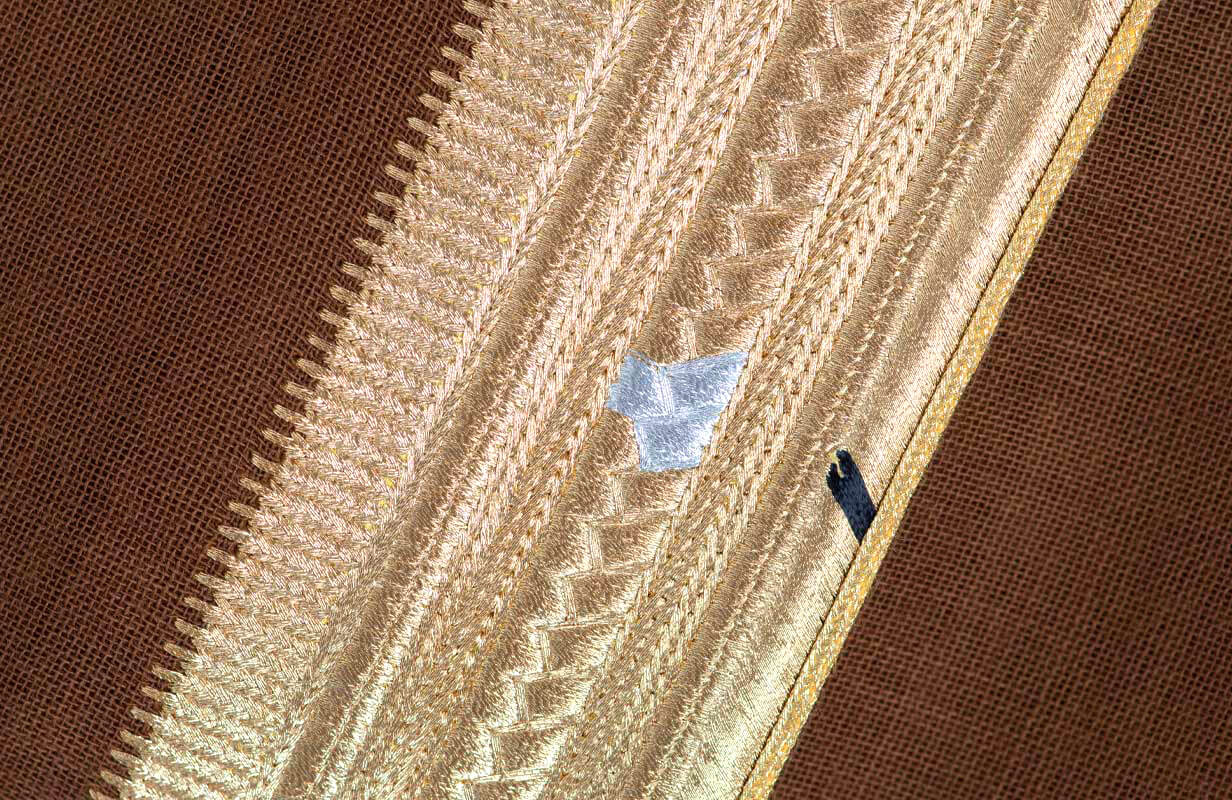 - خيوط الزري مصنوعة بدقة ومزينة بخيوط ماء الذهب.